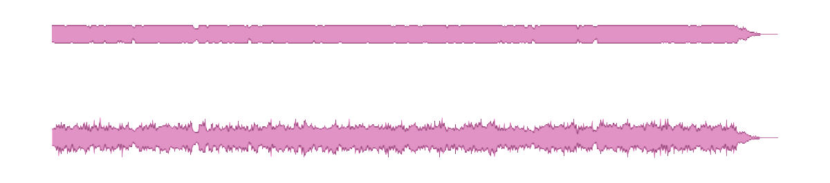 The image above shows two versions of the same track, both normalised to the same integrated loudness. The first version is heavily compressed, the second version isn't.